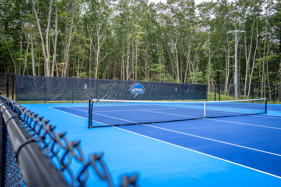 We completed a major tennis facility expansion at the University of New England, enhancing the existing complex with four additional courts and a new viewing and media booth.