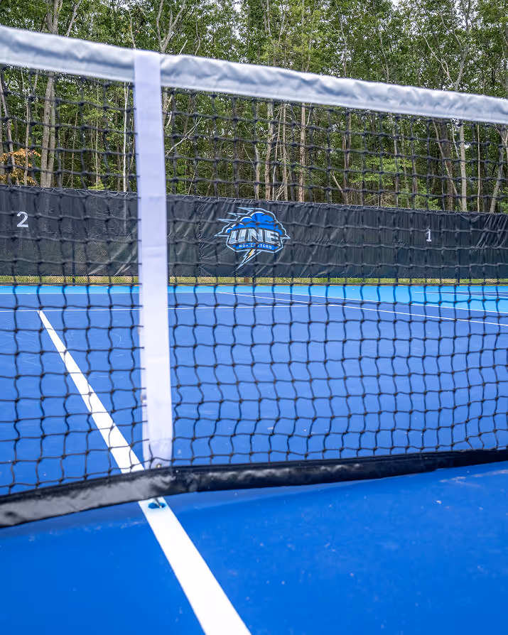 More Info +We completed a major tennis facility expansion at the University of New England, enhancing the existing complex with four additional courts and a new viewing and media booth. The project also included full court resurfacing, upgraded site lighting, and new perimeter fencing to improve performance, safety, and spectator experience. Construction was challenged by extensive ledge encountered on site, requiring over a month of carefully managed blasting operations. The result is a modernized, expanded athletic facility designed to better serve UNE athletes, students, and the broader campus community.